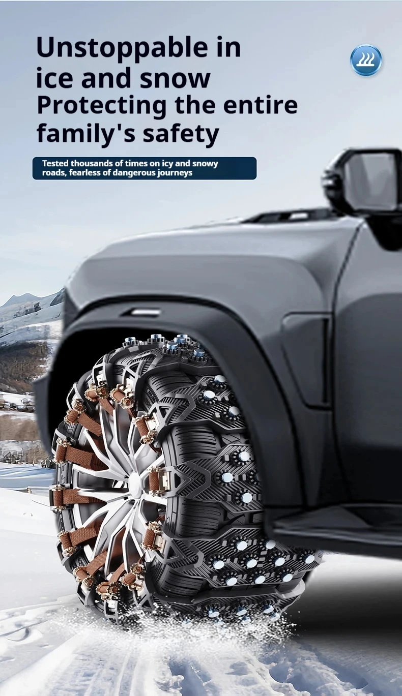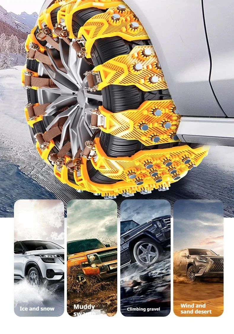 2.The driving speed must not exceed 30 kilometers per hour. Snow chains are auxiliary products for driving safety, and the safe way is to drive carefully and slowly!
