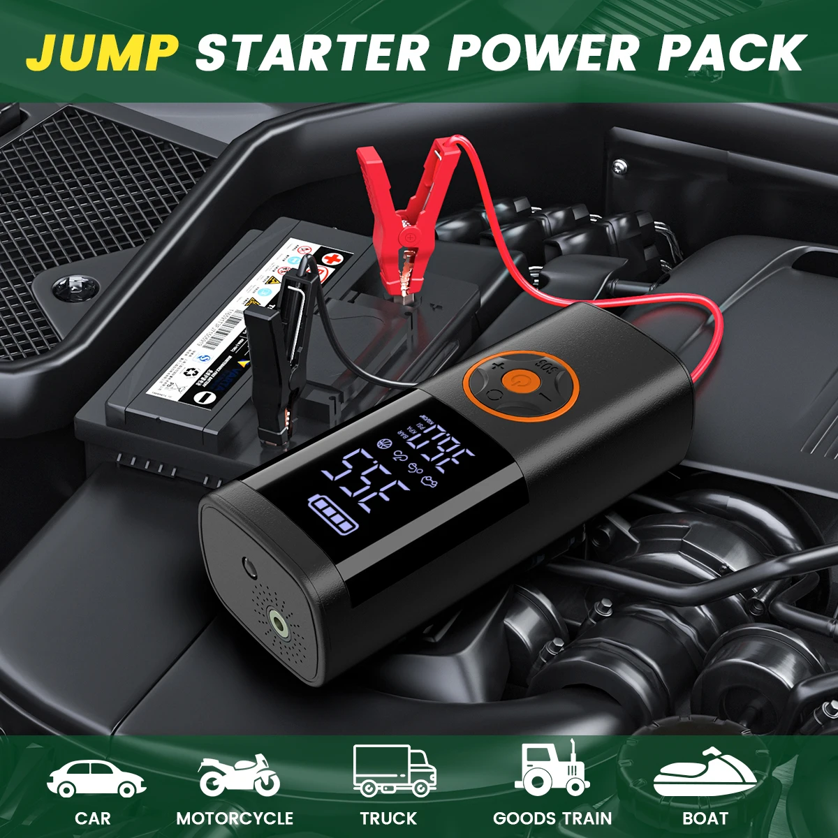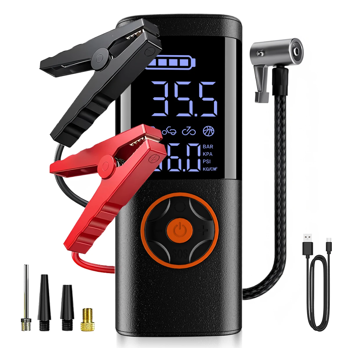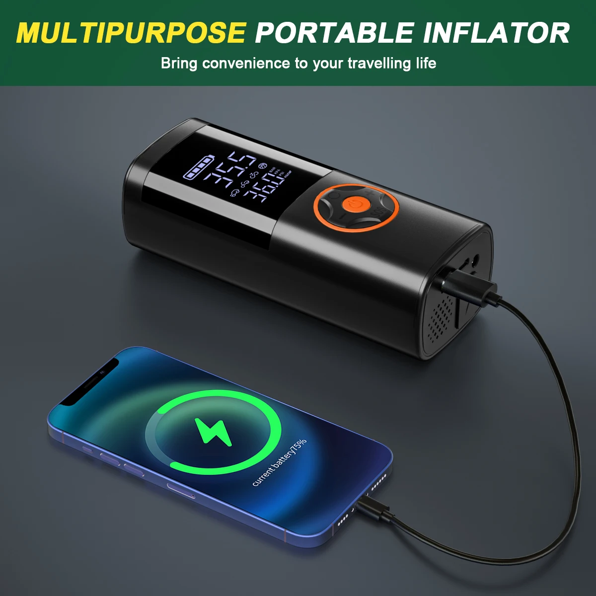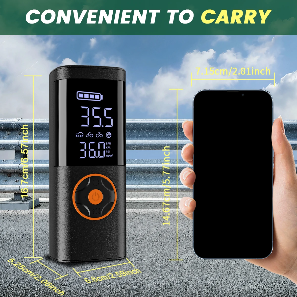 Multi-Function Device: Functions as an inflator, power bank for charging phones, and an emergency LED flashlight, ideal for roadside tire changes in darkness.