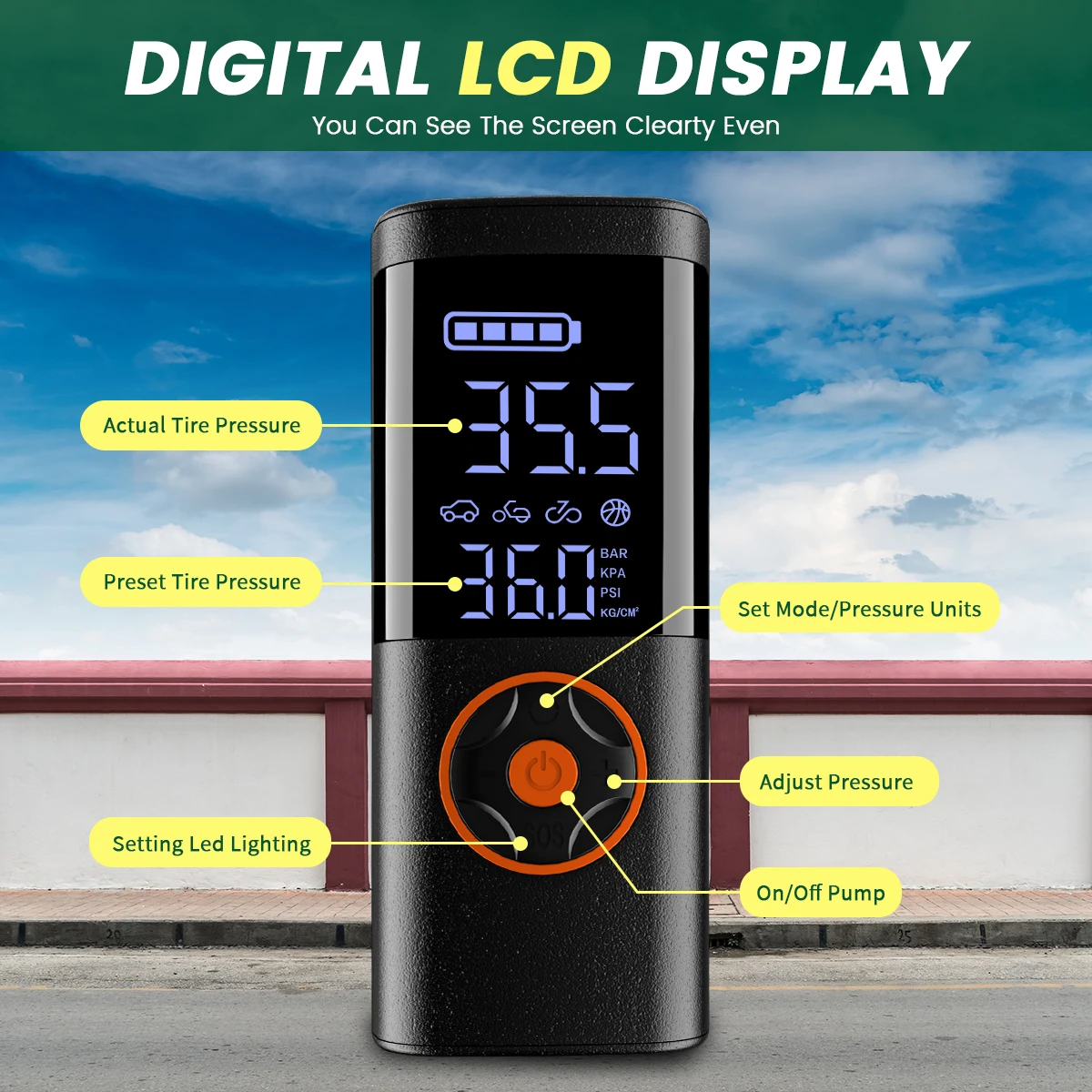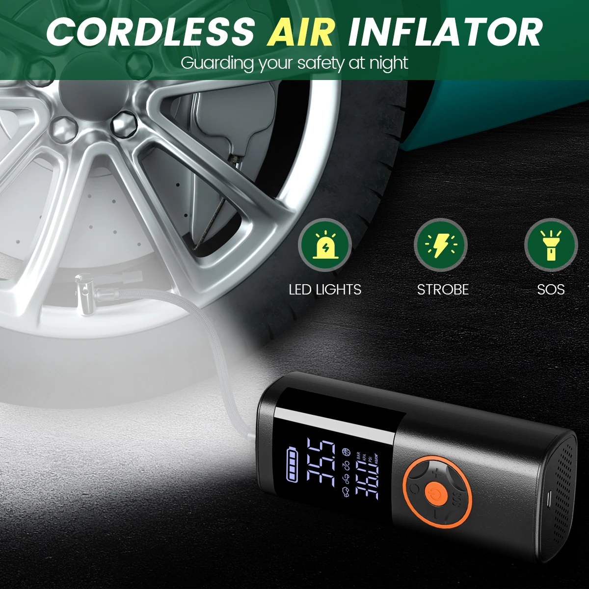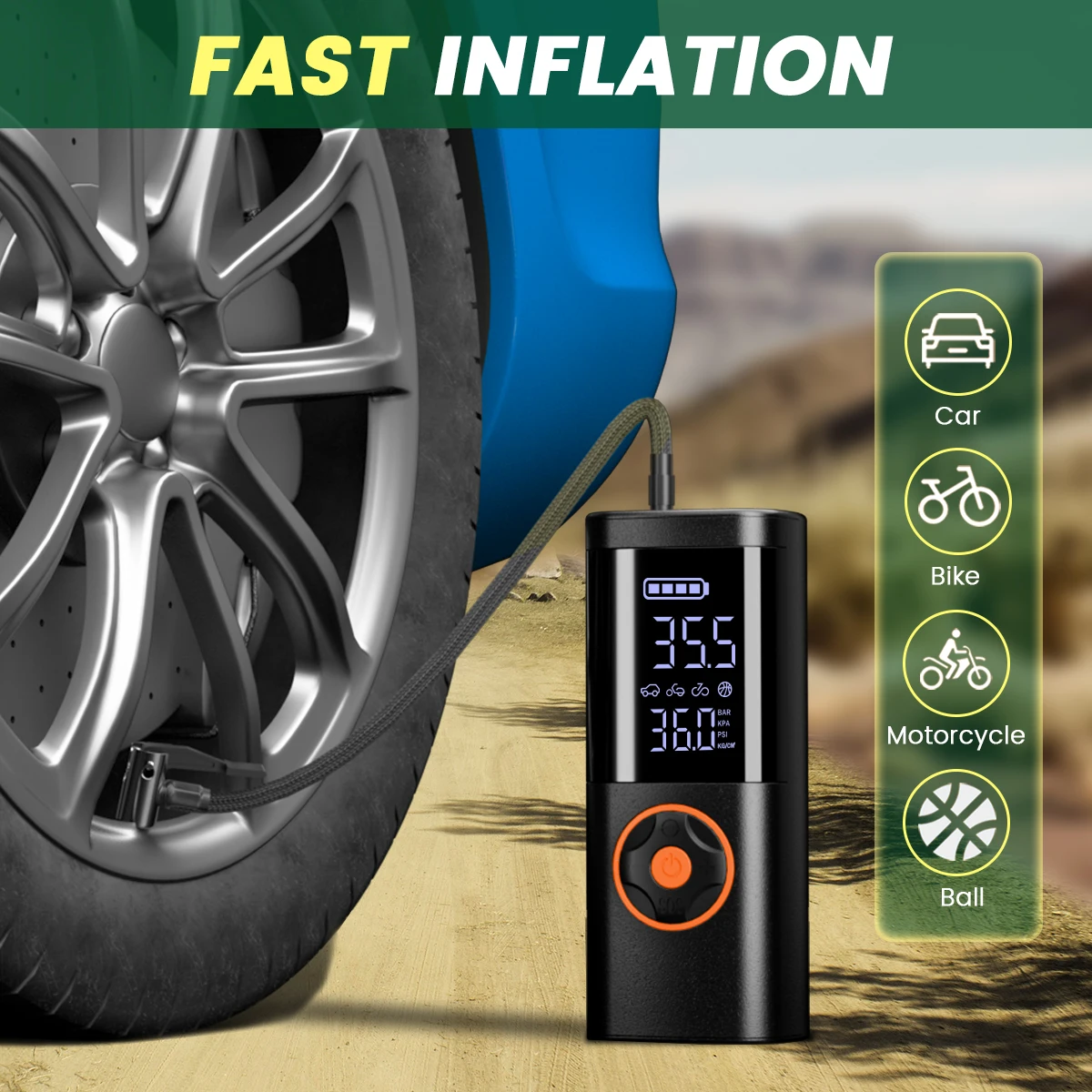Portable Design: Lightweight and compact, this cordless tire inflator is built for on-the-go convenience, making it perfect for drivers, travelers, and outdoor enthusiasts.